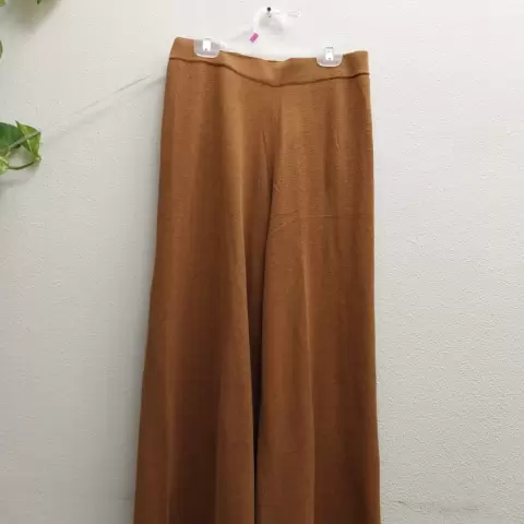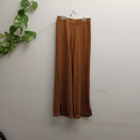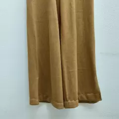 Pantalones acampanados de resorte. El pantalón lo usé dos veces. Le subí la bastilla, pero no esta cortado. Es super largo . Talla S. El café tiene destellos dorados que no se notan casi nada. Son de resorte. Están en excelente estado. La marca es Mango.