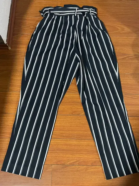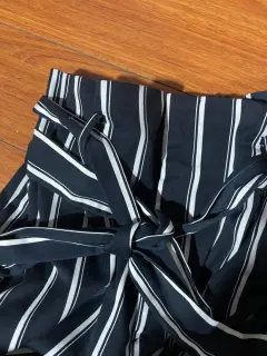 Pantalones capri rayados. Pantalones Con Cinturón de tela Con Estampado De Rayas. Talla 14 H&M. Medidas cintura 43cm, cadera 49cm, tiro 37cm, largo 109cm. Sin detalles. Azul marino con blanco.