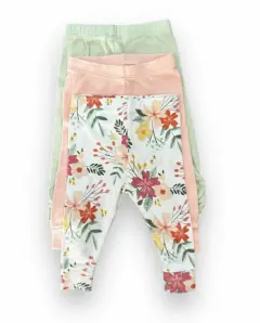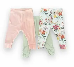 Paquete de 3 piezas Pantalones de algodón El verde tiene terminado corrugadoEl rosa y el floreado normal Talla 12 meses Nuevos con etiqueta Marca Cloud Island