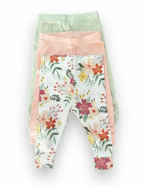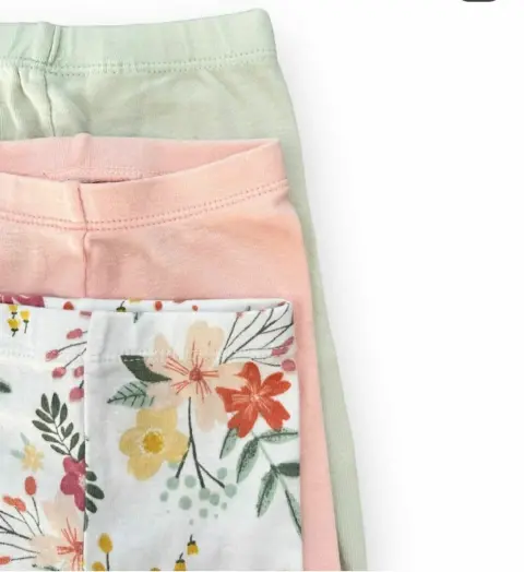 Pantalones de algodón. Paquete de 3 piezas Pantalones de algodón El verde tiene terminado corrugadoEl rosa y el floreado normal Talla 12 meses Nuevos con etiqueta Marca Cloud Island