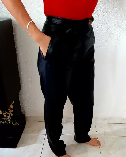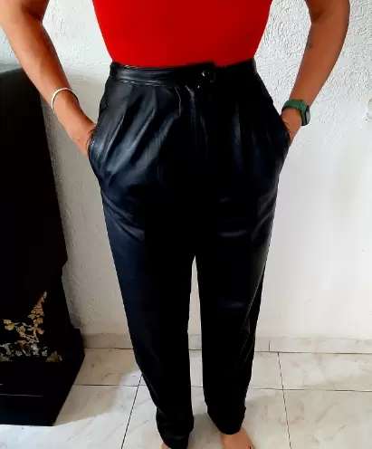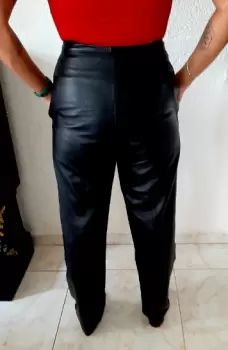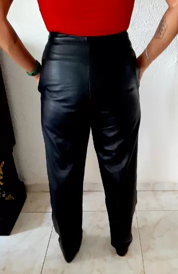 Pantalones negros vini piel talla 6. No tienen marca.Fotos reales puestos publicadosTalla 4Muy buenas condiciones.