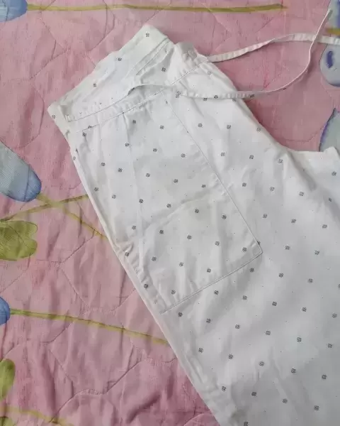 Pescador blanco. Pescador a la cinturaTrae bolsas en la parte de enfrente unicamente.Color: blanco con detalles azules.Talla: 32 mxMedidas: *Cintura 39 cm anexo foto*Largo 80 cmCupón: JanMoPBn0H