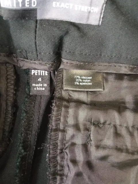 The Limited exact strech pantalón Capri en color negro, talla 4 petite. Ajuste perfecto ajustable, cuenta con dos bolsillos frontales y dos bolsillos traseros y broches de ajuste en la cintura.Medidas: 78 cm de largo, 74 cm de ancho en cintura y 86 cm de ancho en cadera.Usado en buen estado. Material: 77% viscoso, 20% nylon y 3% spandex.