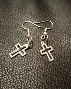 Aretes cruz plateado