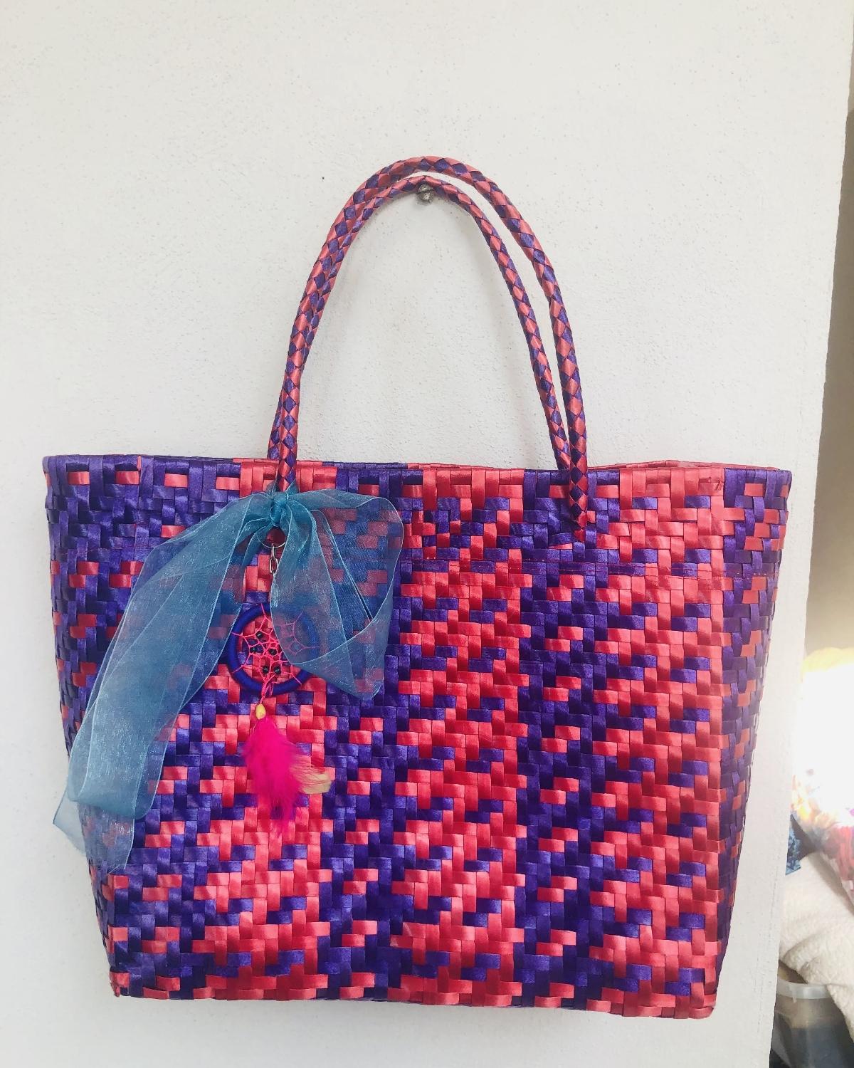 Bolsa artesanal rosa con morado