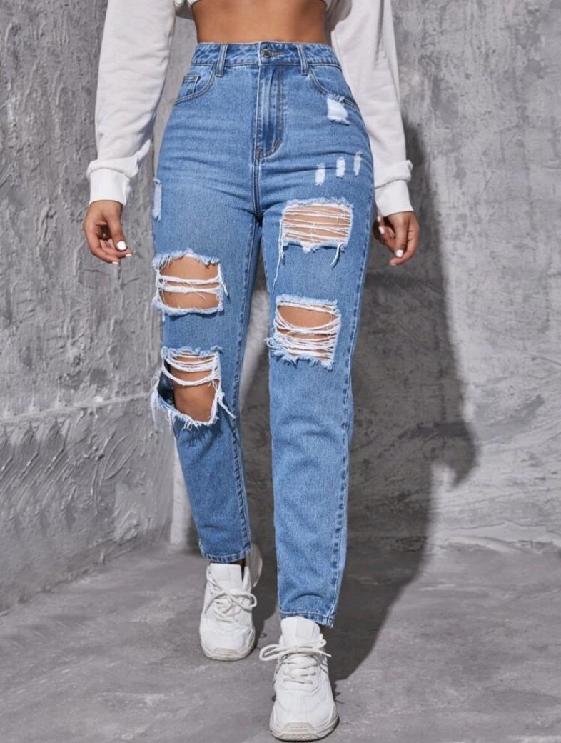 SHEIN EZwear Jeans cónicos desgarro crudo
