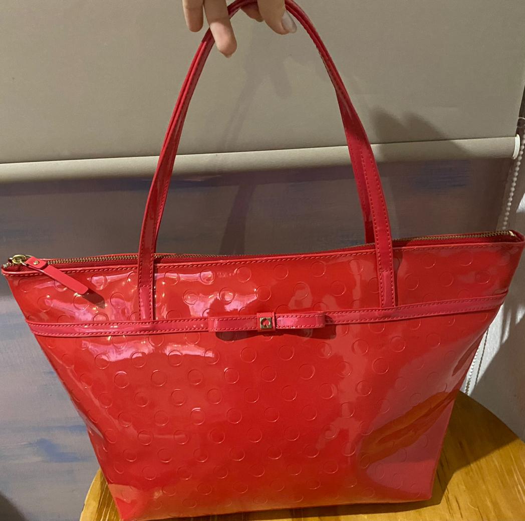 Paquete Kate spade. Este paquete contiene Bolsa tote charol en rojo Cartera-billetera en piel y estampado de flores Bolsa en piel de asa corta y strap. Puedes intercambiar modelos a gusto.