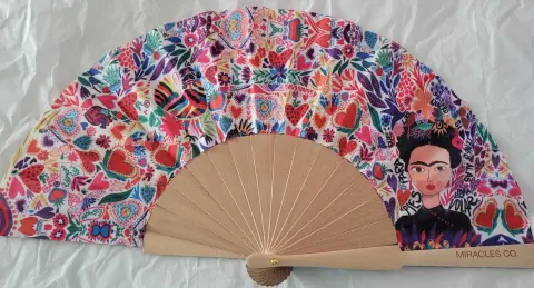 Abanico para dama estilo Fridita. 🪭A donde quiera que vayas, Abanicos Miracles Co. Tu mejor accesorio.🔥 Abanicos de tela impresa y varillas de madera. 23x44 cm. Ideal para tú bolso.