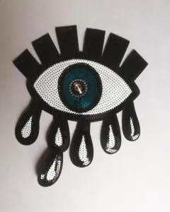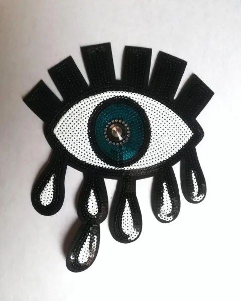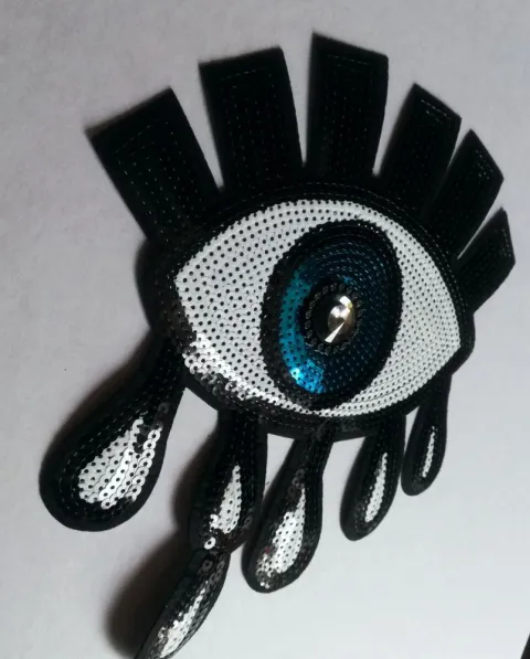 Parche ojo turco. Parche ojo turco hecho de lentejuela con brillantitos en el centro. Tiene medidas aprox. de 27 x 22 cm.
