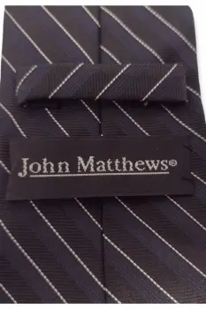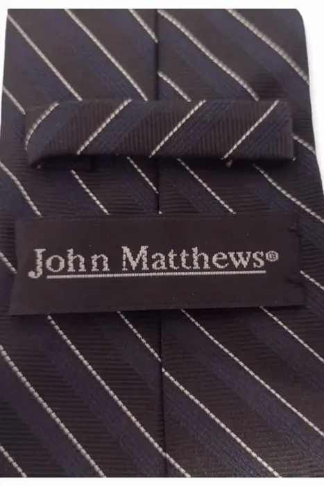 Corbata John Matthews Regular Negra. Corbata John Matthews Regular Negra a RayasCorbata Regular Negra a rayas plateadasArtículo: CorbataMarca: John MatthewsEstilo: RegularComposición: PoliesterOrigen: MéxicoTela: PoliésterForro: PoliésterEntretela: PoliésterAncho: 8 cmLargo: 1.45 mtAclaro tus dudas
