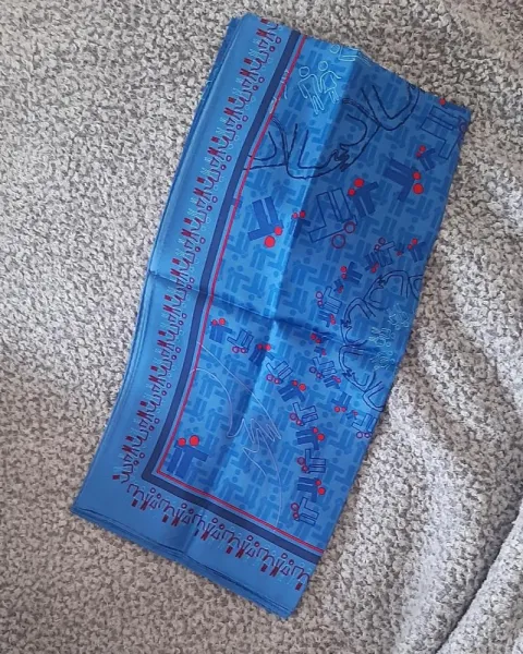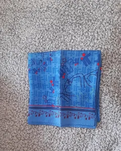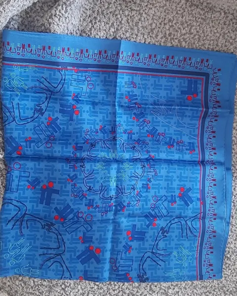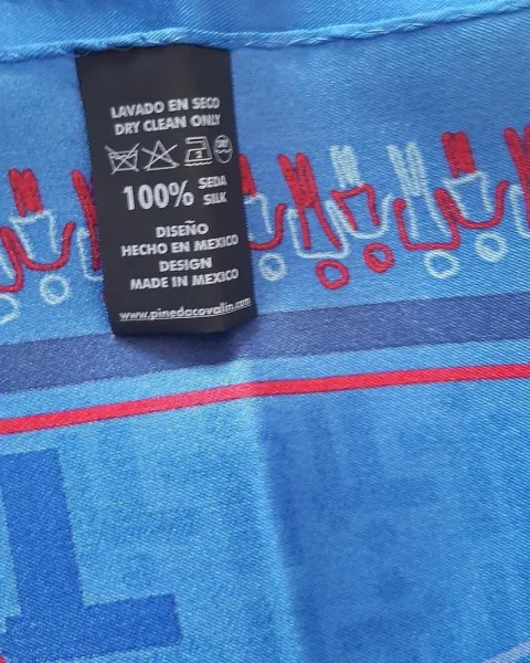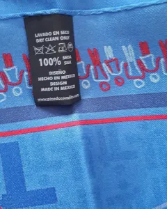 Mascada de seda Pineda Covalin. Linda mascada de seda mide 90 x 90 cm azul con rojo