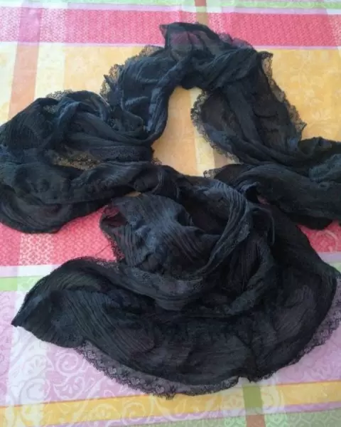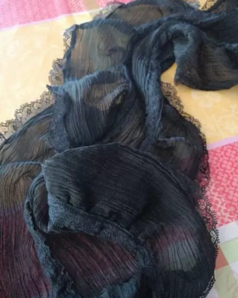 Mascada vintage. Hermosa, olanes de encaje, delgada y elegante.
