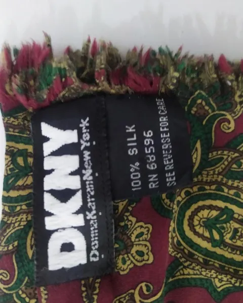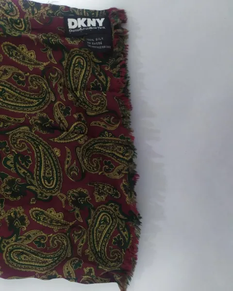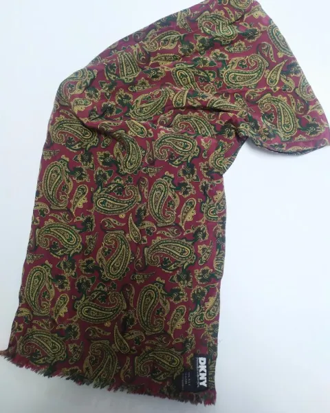 Mascada vintage DKNY. Hermosa mascada de seda con diseño pasley viene doble esta súper linda, el accesorio perfecto para tu outfit.Dimensiones: 28 cm de ancho x 136 cm de largo