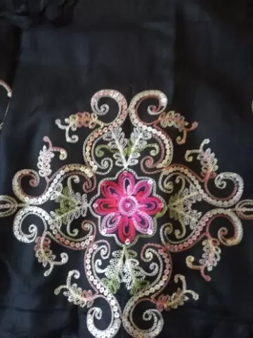 Pashmina bordada. Pashmina bordada en hilo y lentejuelas material algodón diseñó flores con fleco para uso casual o para eventos