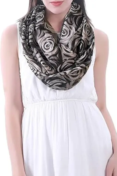 Pashmina circular de flores. Linda pashmina negra con flores, se ve muy bonita es de las que son en forma de círculo y van envueltas aquí te dejo las medidas;*96 cm de ancho (es la parte que va en el cuello)*100 cm de largo(tiene algunos hilitos jalados pero no son notorios)