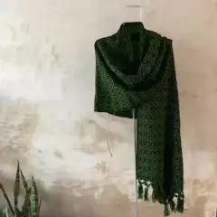 Rebozo Tenacidadno g. Bonito y atemporal rebozo hecho a mano con la técnica de telar de cintura en color verde , nuevo y sin detalles . Medidas aproximadas 215 x 64 cm