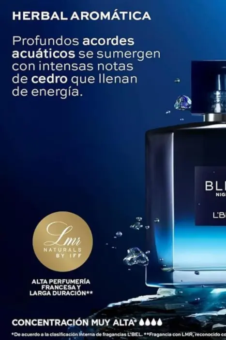 Bleu Night EDP 100 ml. Siente un aroma lleno de la energía y frescura del reventar de las olas del mar que, combinadas con intensas notas herbales de salvia, crean un perfume masculino con energía sin límites.