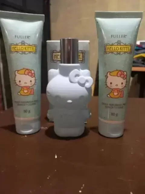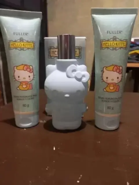 Colonia Hello Kitty azul con dos cremas perfumadas para manos y cuerpo, edición limitada aroma cítricos , nueva con su caja y cremas selladas.