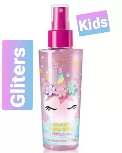 Colonia con gliters unicornio para niñas. Colonia con atomizador para niñas. Contiene gliters. Aroma: algodón de azúcar. Contenido 150 ml.