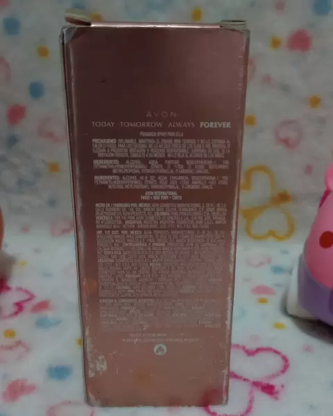 Perfume para Dama "Forever" de la marca Avon.Está nuevo, pero la caja de esta maltratando.Los detalles son visibles en las últimas 2 fotos.