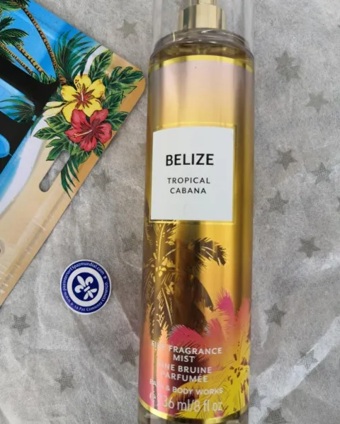 Fragancia corporal Belize Tropical Cabana. Fina fragancia corporal. Daiquirí de banana, ananá jugoso y arena dorada. Hecho en USA. 236 ML