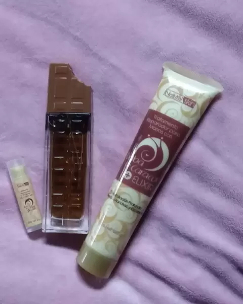 Kit choco-caracol. Este kit consta de un perfume, una crema reparadora de manos y un bálsamo para labios