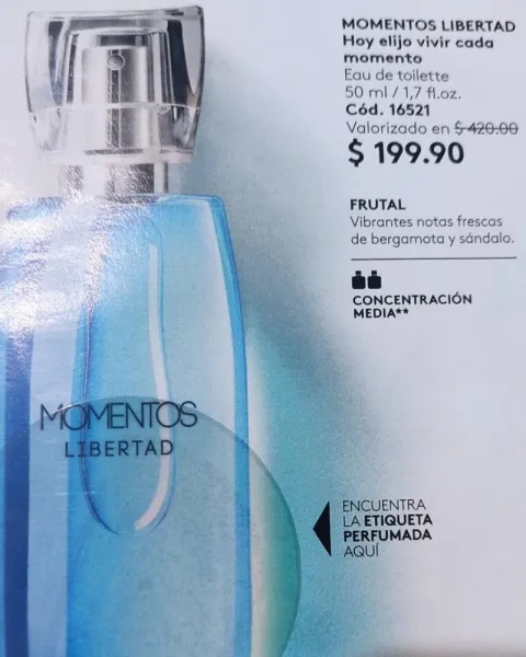 Momentos libertad. Aroma frutal vibrantes notas frescas de bergamota y sandalo