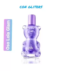Oso Lola Glam Colonia. Colonia con atomizador para dama con glitters. Contenido 65 ml. Linda botella en forma de osito. Con notas de mandarina, rosas y vainilla.