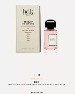 Perfume bdk Bouquet de Hongrie. Perfume para Dama NUEVO de 100 ml.Fue comprado en un viaje a Francia, en México solo lo vende el Palacio de Hierro en $4,600... yo lo estoy rematando porque ya no tengo espacio en mi closet.Huele riquisimo, tiene notas de Pera,Grosella negra, Fresa, corsa de pavo, jazmín sambac, Lorenox, Almizcle, Cedro, Ámbar.