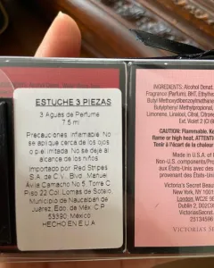 Cajita con tres perfumes eau de parfum 7.5ml son los pequeños mandados directo de la página de Victoria’s Secret mex