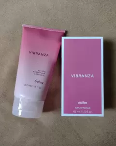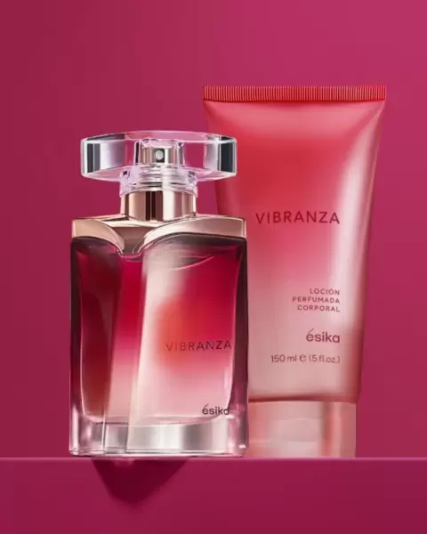 Perfume y loción corporal VIBRANZA L'BEL. Perfume de concentración muy alta, aroma oriental dulce (arándanos, flor de café y vainilla de Madagascar) más una loción perfumada corporal del mismo aroma
