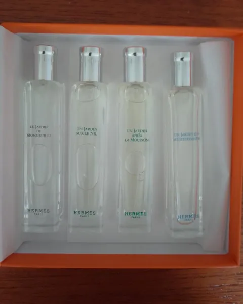 Perfumes Hermes de colección para llevar en bolso. Cuatro perfunes Hermes de 15 ml cada unoUn Jardin apres ma MoussonUn Jardin sur le NilLe Jardin de Monsieur LiUn Jardin sur la LaguneCompletamente nuevos
