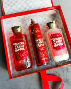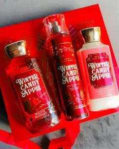 Set crema, jabón y fragancia. WINTER CANDY APPLE. Fragancia o mist, body Lotion y gel de ducha winter candy apple, En caja de regalo Merry Christmas.Si es tu primera compra encontraras mi código para un descuento de 100 pesos.