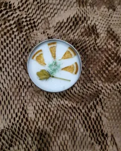 Vela hecha artesanalmente, bote metalico. Aroma azahar, chocolate, Citronela, Frutos Rojos, Manzana Canela, Menta, Orquídeas, Cereza, Lavanda etc pregunta por más aromas
