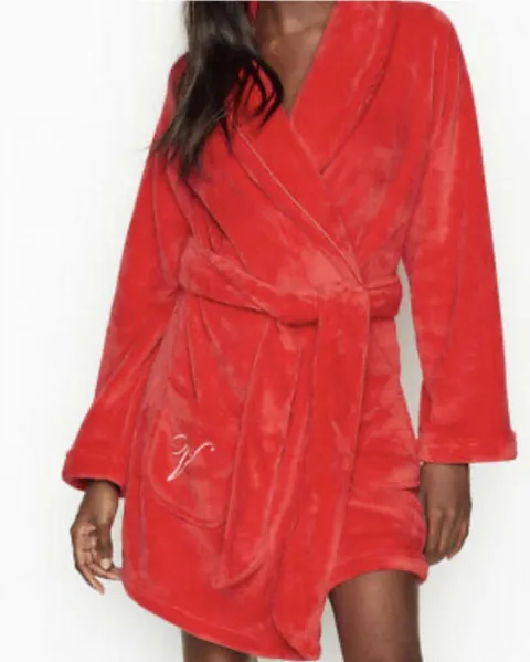 Bata afelpada suave en color rojo cereza marca Victoria’s SecretOriginal Poco uso , no tiene detallesMarcada como xs/s aunque a mi parecer le va a una mediana también pues esta amplia y se abrocha a la medida