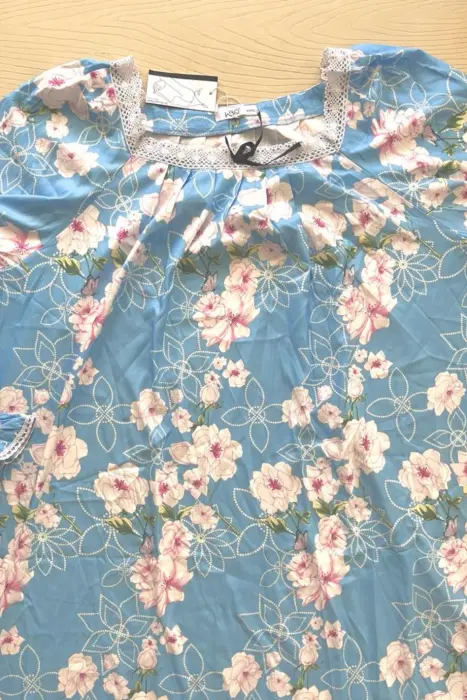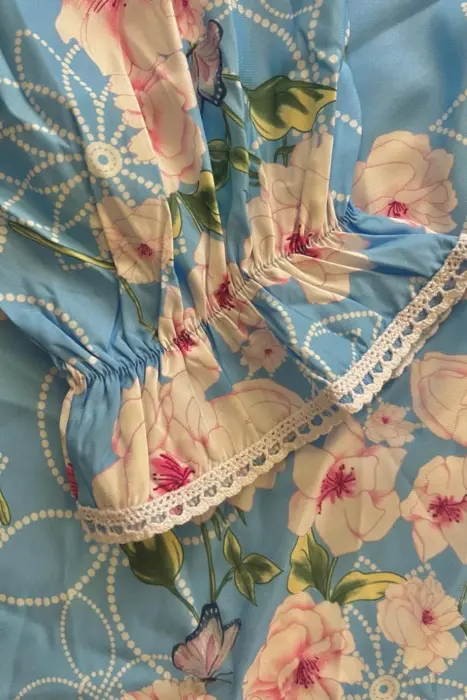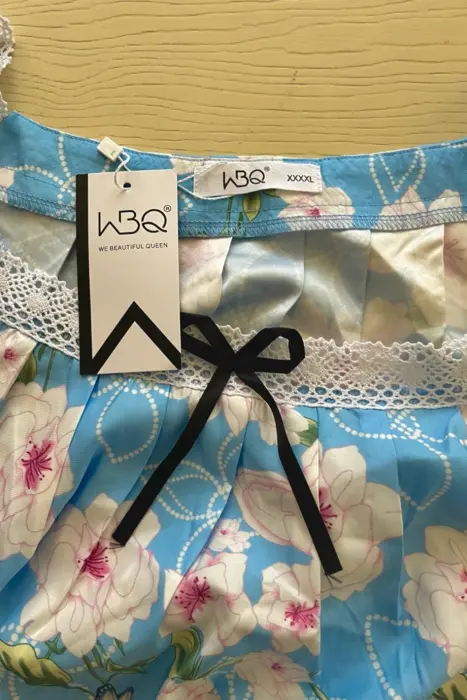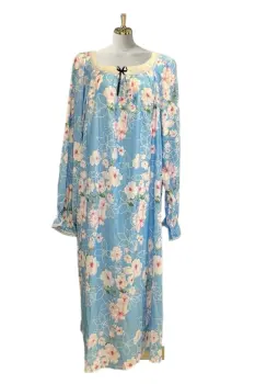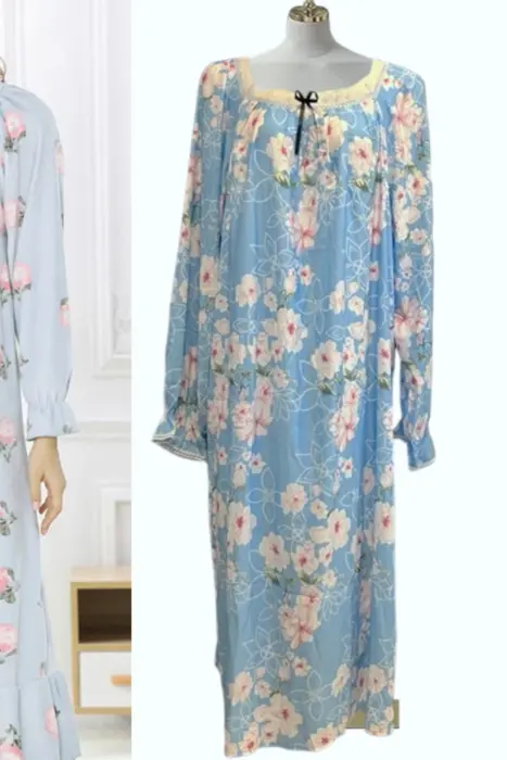 Camison para dormir vintange la tela es tipo satin, viene con tipo encaje decorativo en el escote y moñito verde, el corte es recto, las mangas vienen con elastico y olan en la parte de la muñeca, la tela no estira.Medidas:Axila a axila: 78 cmcintura: 164 cmLargo: 131 cm