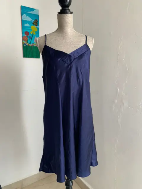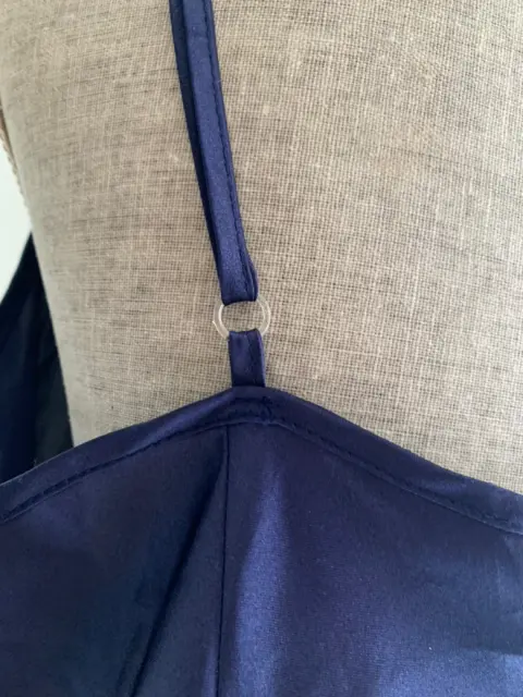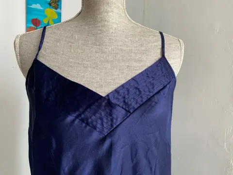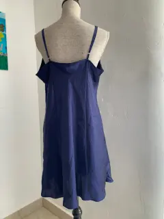 Camisón para dormir, Azul marino satinado, ajuste en tirantes.Cuello V ( talla 14/16)