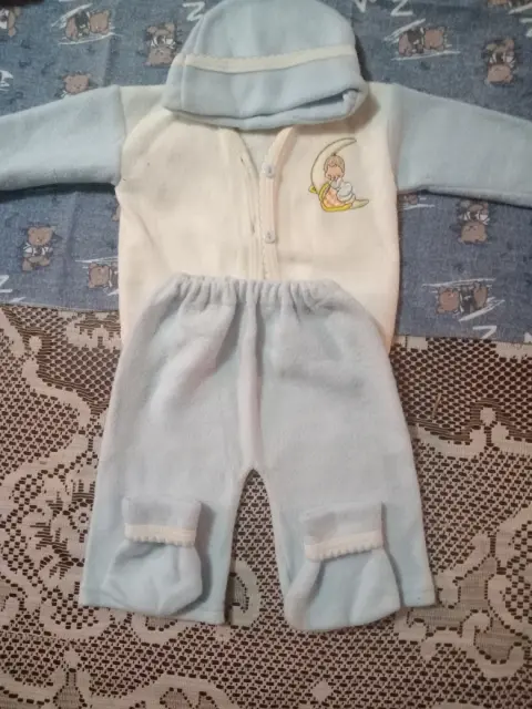 Conjunto de 4 piezas para recién nacido tela calientita , pantalón camiseta gorro y botitas , mínimos detalles de uso