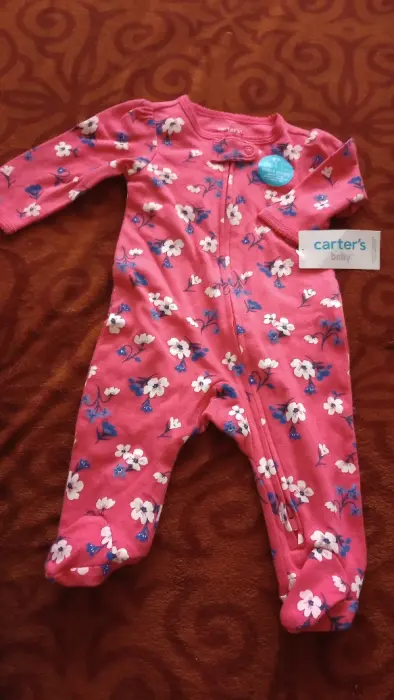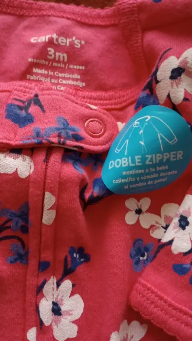 Mameluco de algodón flores rosa. Mameluco 100% de algodónDoble cierreBotón de presion en la parte del cuelloColor rosa con estampado de flores