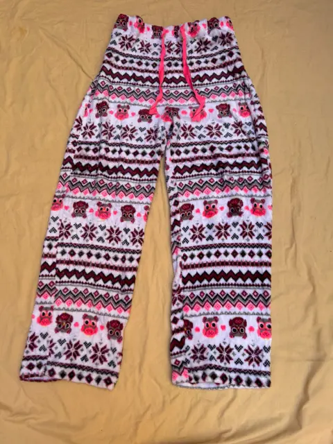 Pantalón pijama de tela polar. Hermoso pantalón de tela polar con detalles de figuras de búho y jareta en al cintura. Las medidas son: 52 cm de cintura sin estirar, cadera 59 cm y tiro 42 cm.