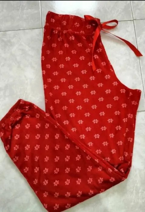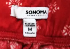 Pantalón pijama talla M, marca SONOMA, color rojo. Medidas cintura 38 cms, cadera 56 cms y largo 97 cms.