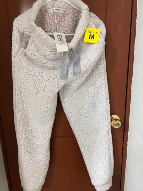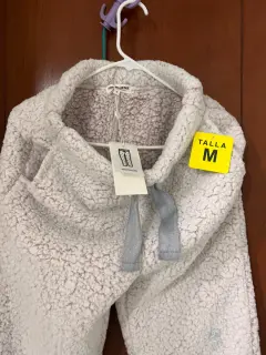 Pijama calientita en tono rosa claro la textura es tipo aborregada y suave