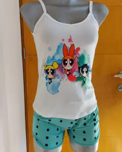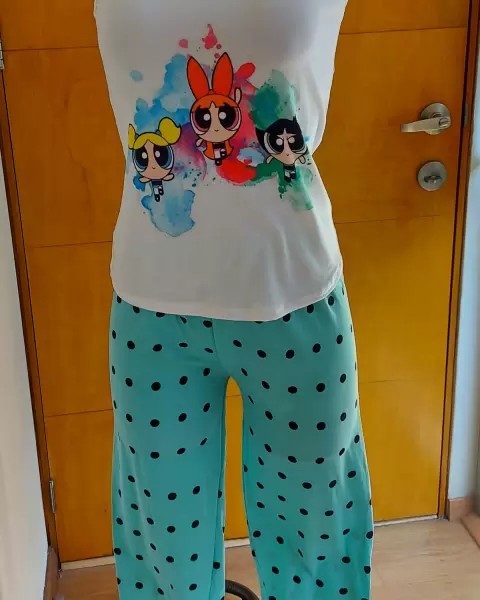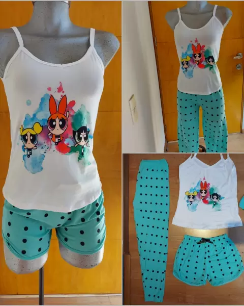Pijama chicas super poderosas unitalla nueva!. Bonito set de pijama de las chicas super poderosas. Es unitalla, viene con 4 piezas que incluye, short, pantalón, blusa y bolsita de tela para guardar pijama. Es nuevo sin etiqueta la tela es brush por lo tanto Es muy suave y fresca, perfecto para cualquier temporada y aquí contiene la opcion de elegir short o pantalón