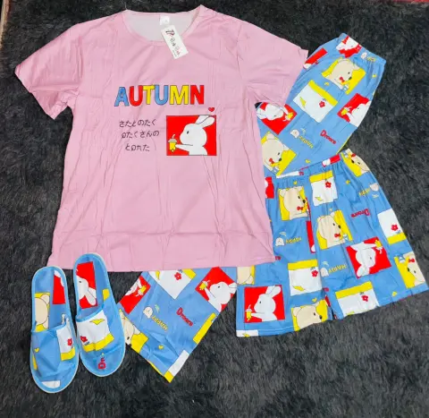 💖 Pijama de 3 piezas playera,short y pantalón tela brush (algodon)