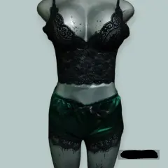 Pijama de dos piezas de encaje ,color verde oscuro y negro,talla chica ,marca LVL.nueva sin etiqueta.