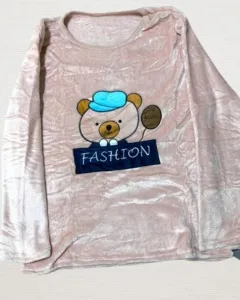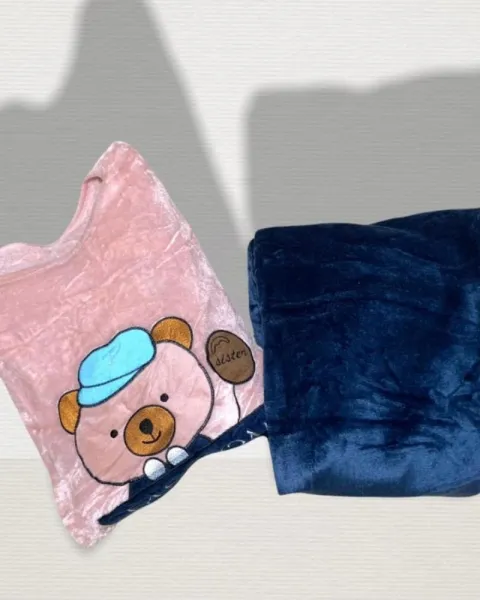 Pijama de osito. Pijama de osito con el suéter rosa y pantalón azul.