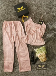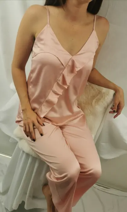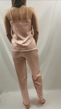 Hermosa pijama elaborada en tela satín, suave, de excelente calidad, cómoda y ligera.Este diseño clásico y elegante en combinación con la suavidad de los materiales, permiten tener un sueño profundo y reparador ya que brindan comodidad extrema.Si eres de las que les gusta la combinación de comodidad y estilo ¡está pijama es para ti!💯 % nueva Color rosa, talla L