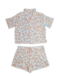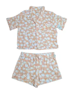 🌻 Pijama dos piezas Jenni Intimates, con estampado de palmeras ☺️🌻Suave y muy cómoda 🌻 Color melón ✨🌻 Shorts con cinto en la cintura para mayor ajuste ☺️ camisa con botones para mayor comodidad 🤗🌻 Súper cómoda 🤗🌻🌻NOTA: los colores pueden variar un poco del original dependiendo de la luz y la cámara 📷