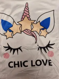 Pijama juvenil 2 piezas unicornio. Pijama juvenil 2 piezas (playera y short) con figura de unicornio, color blanco y azul.
