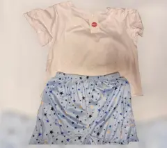 Pijama juvenil 2 piezas (playera y short) con figura de unicornio, color blanco y azul.